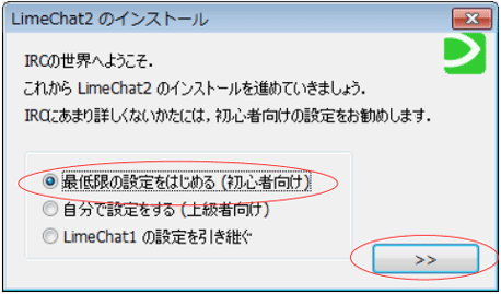 「最低限の設定を始める(初心者向け)」を選択して「>>」 ボタンをクリックします。
