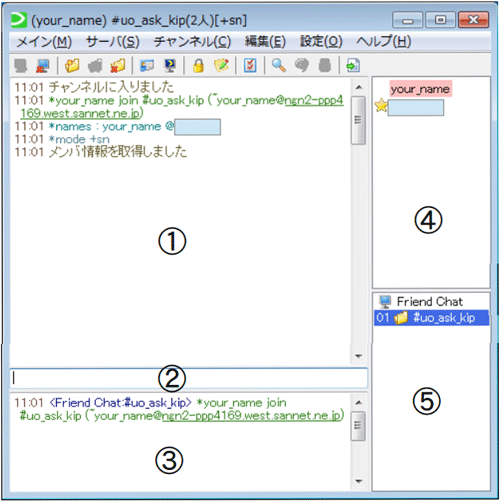 ②…入力ウィンドウです。ここに文字を入力し発言します。